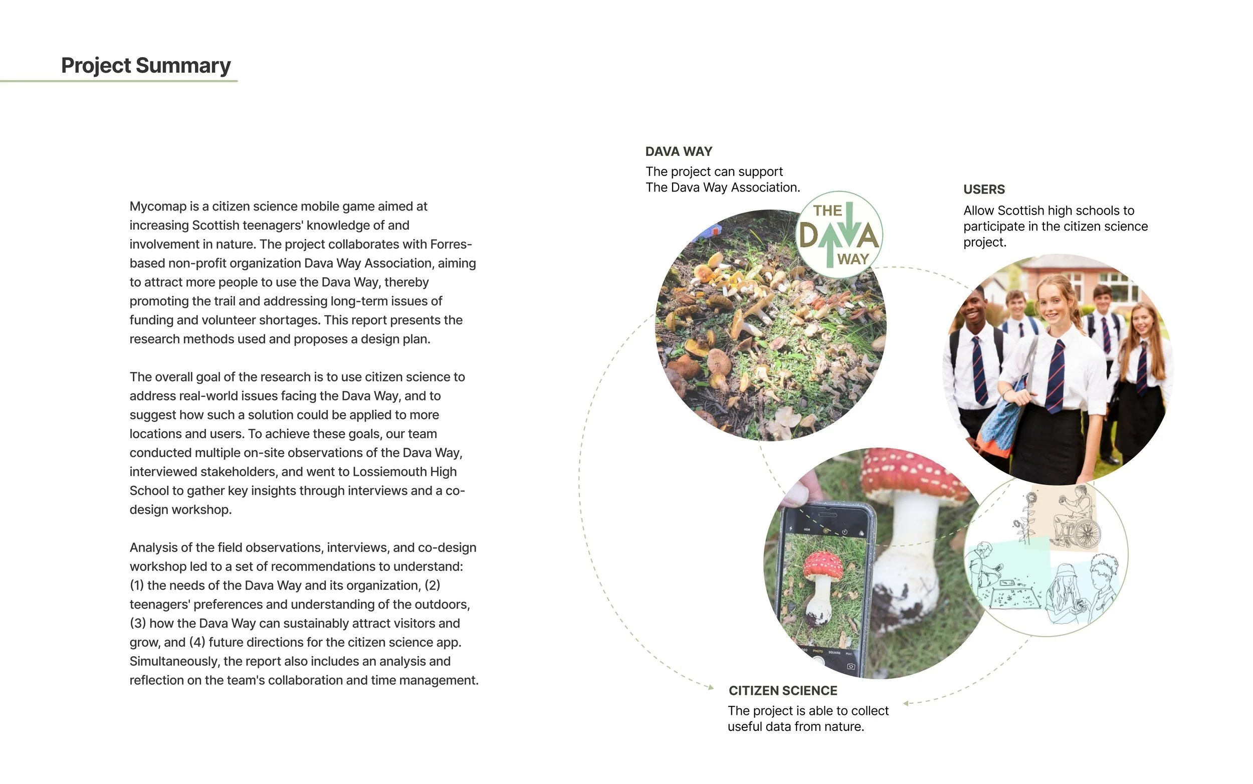 MycoMap is a citizen science mobile game aimed at increasing Scottish teenagers' knowledge of and involvement in nature.
